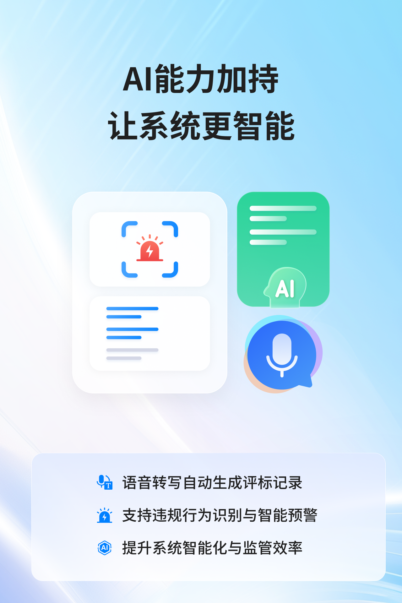 支持双盲评审、多角色权限、全流程录制、环境监控等
